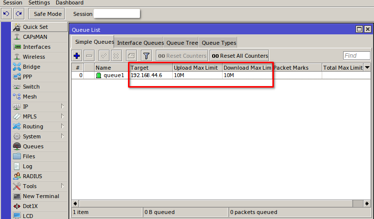 4 Opcional: Podemos limitar la velocidad desde Mikrotik