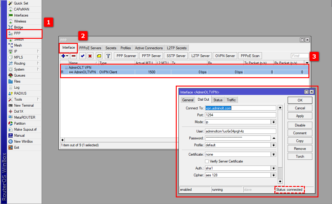 4Pegamos en la terminal de su Routerboard el script que copiamos y verificamos la conexion.