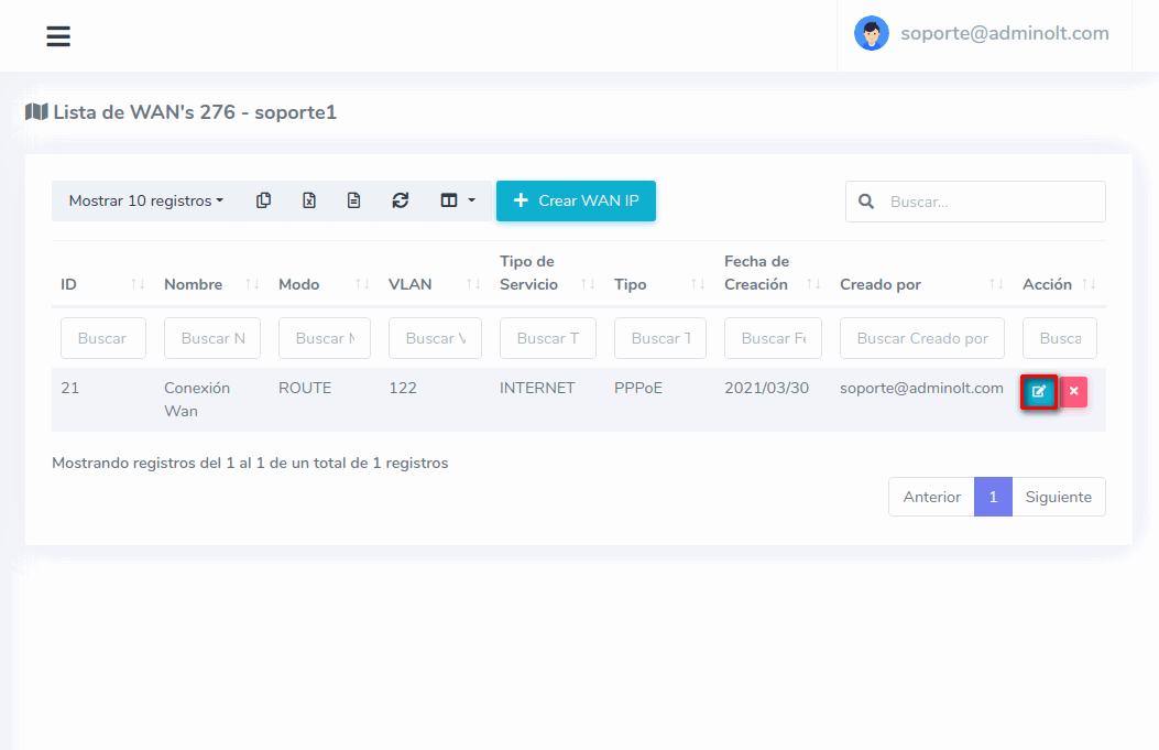 ¿Donde crear configuraciones WAN IP en AdminOLT?