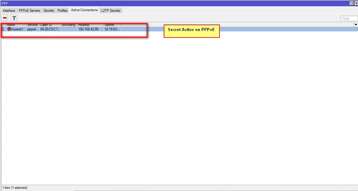 2 Nos daremos cuenta que en el Mikrotik ya nos aparece en conexiones activas