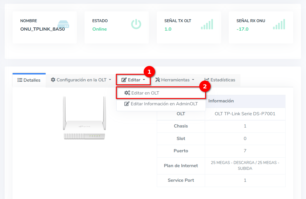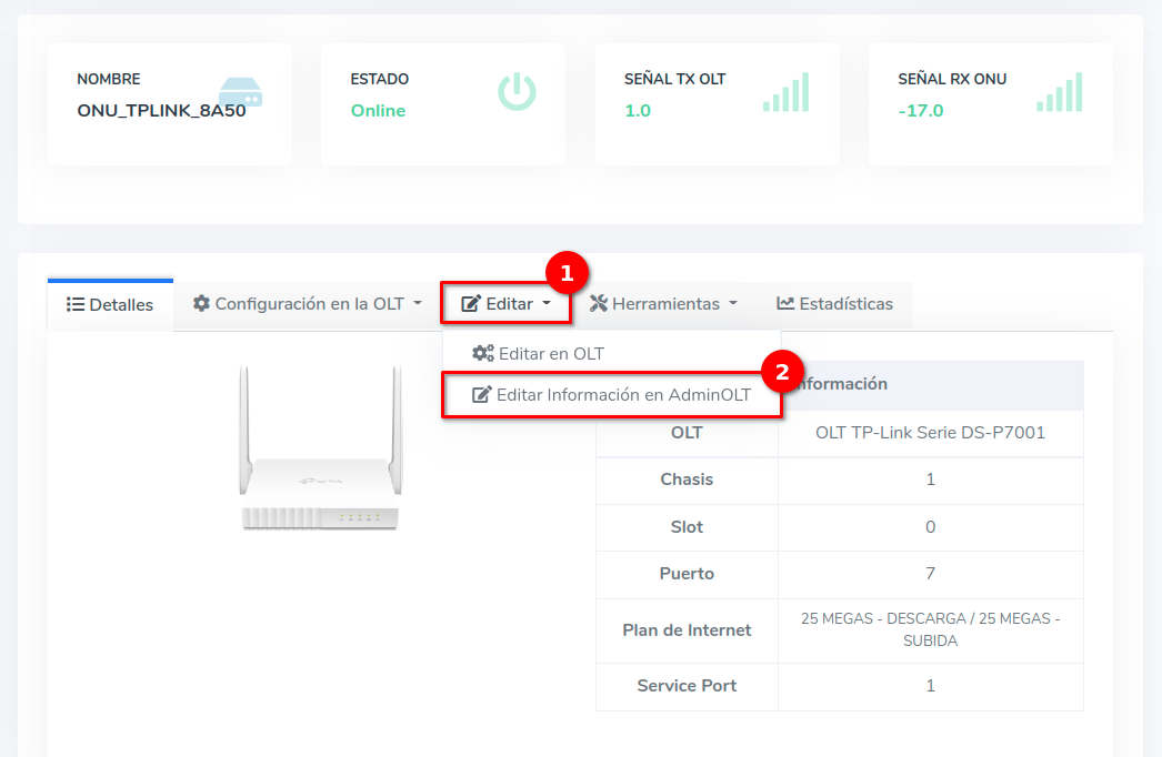 - Editar ONU en AdminOLT desde Detalles de ONU