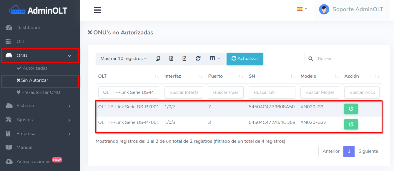 Pasos para editar información de ONU Autorizada por SN