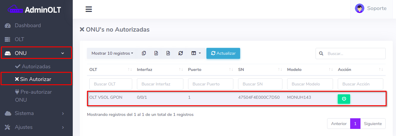En AdminOLT podemos editar información de una ONU Autorizada en la OLT, supongamos que alguna de las ONUs que tenemos autorizadas en el sistema se estropea. Tomaremos como ejemplo esta situacion para explicar el propósito de esta función. Asi que en ese caso en AdminOLT al editar ONU por SN podemos tomar información de alguna ONU no Autorizada y usarla, sin perder la configuración inicial que teníamos.