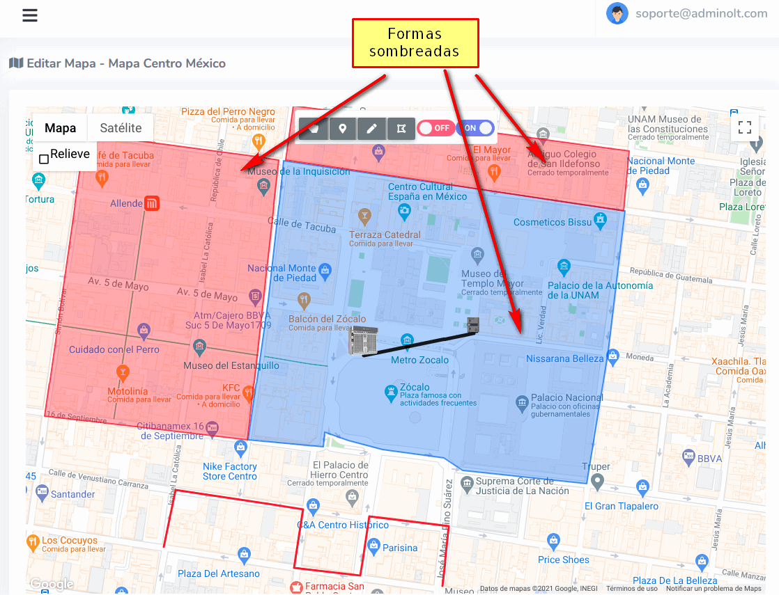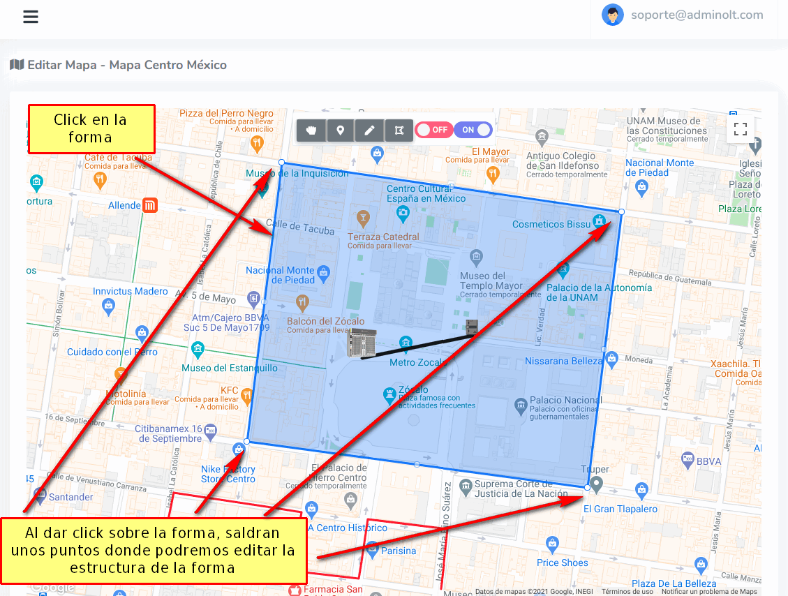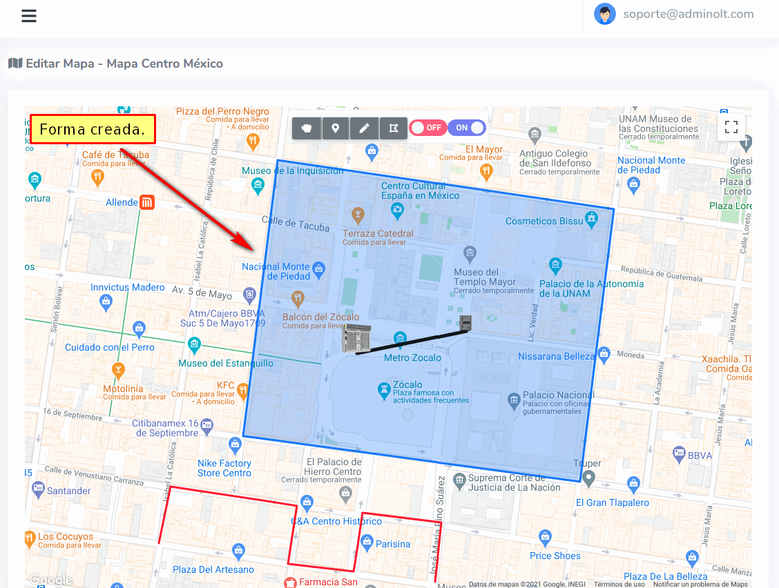 Para dibujar nuestra Geozona damos click en los puntos que deseamos.