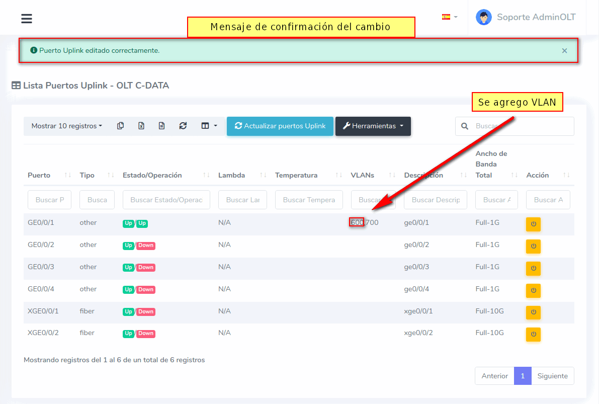 4En la OLT se debe de Taguear los puertos PON en la VLAN
