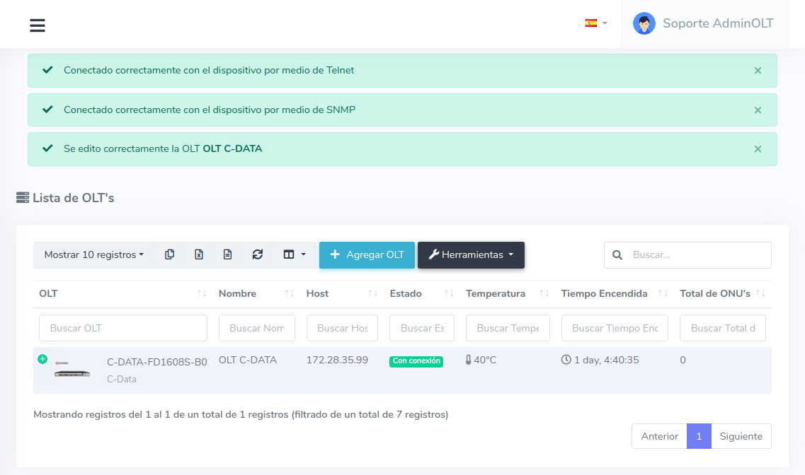 1 Para poder establecer la conexión de manera exitosa es necesario que generemos un script, para poder generarlo, nos dirigimos a nuestra OLT y seleccionamos la opción de editar.